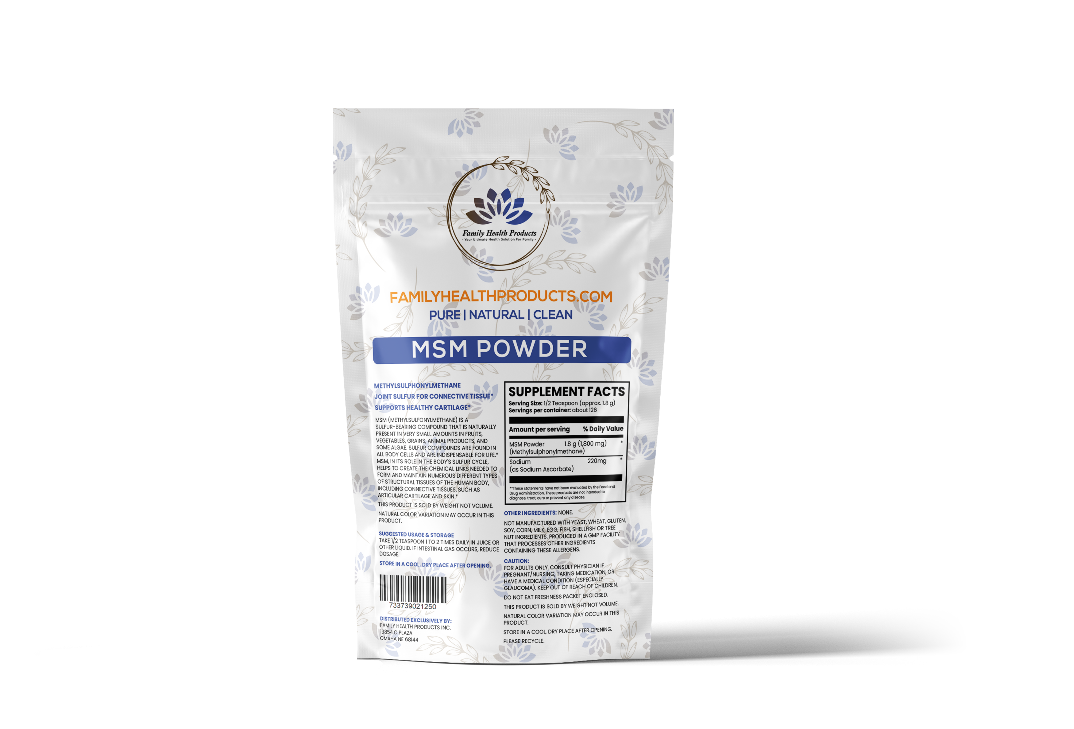 MSM Powder (Methylsulfonylmethane) 2.2lbs by Family Health Products.